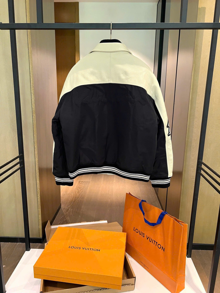 Áo khoác bóng chày nam phối nhiều mảnh vải mới của Louis Vuitton
