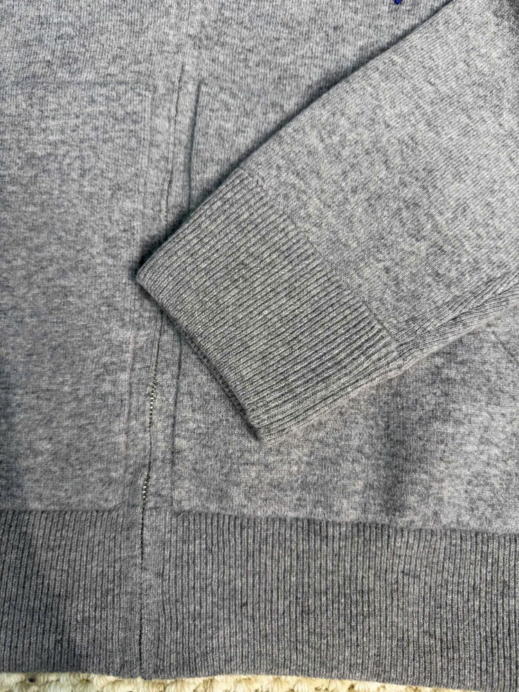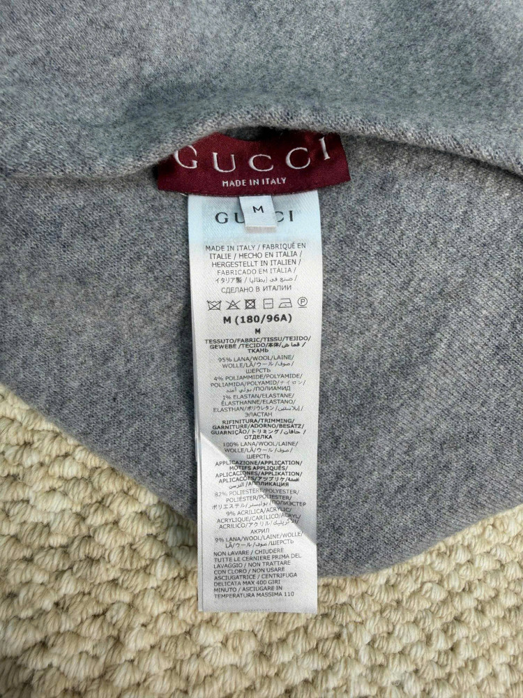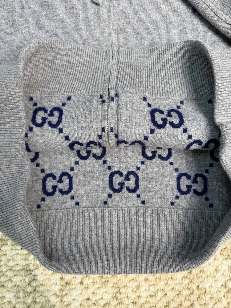 Bộ sưu tập Xuân Hè 2025 của GUCCI: Áo khoác nam hai mặt bằng len, khóa kéo, màu xám