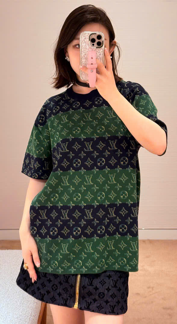 Áo thun ngắn tay cổ tròn dệt kim jacquard in họa tiết Monogram Heritage phối màu 1V