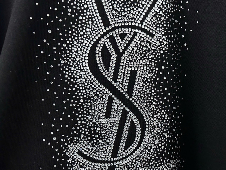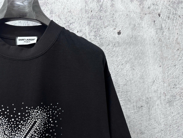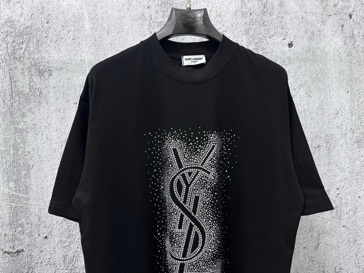 Áo thun ngắn tay Saint Laurent 25ss đính đá Swarovski cao cấp