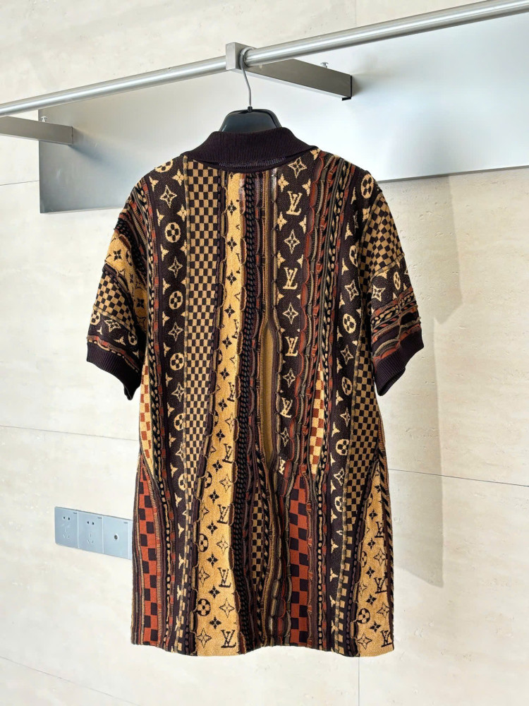 Áo thun tay ngắn cổ polo dệt kim họa tiết Monogram thuộc bộ sưu tập hợp tác giữa 1V và Louis 25FW