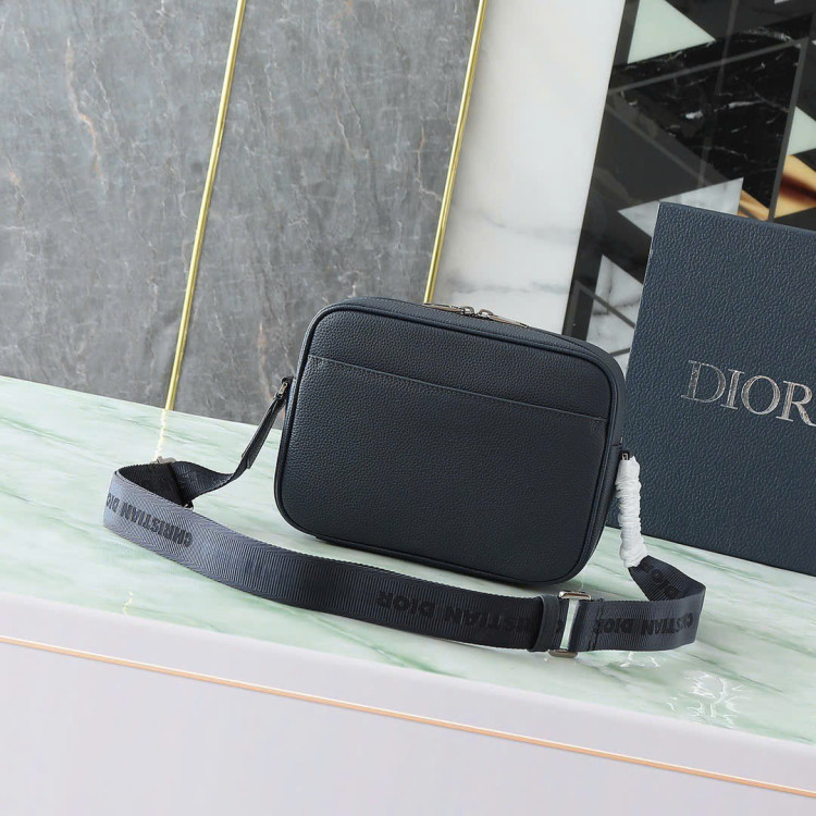 Logo Christian Dior có thể điều chỉnh; Dây đeo vai bằng vải jacquard nylon và da bê; Mặt trước được trang trí bằng logo Dior bằng đồng thau mạ bạc cổ điển