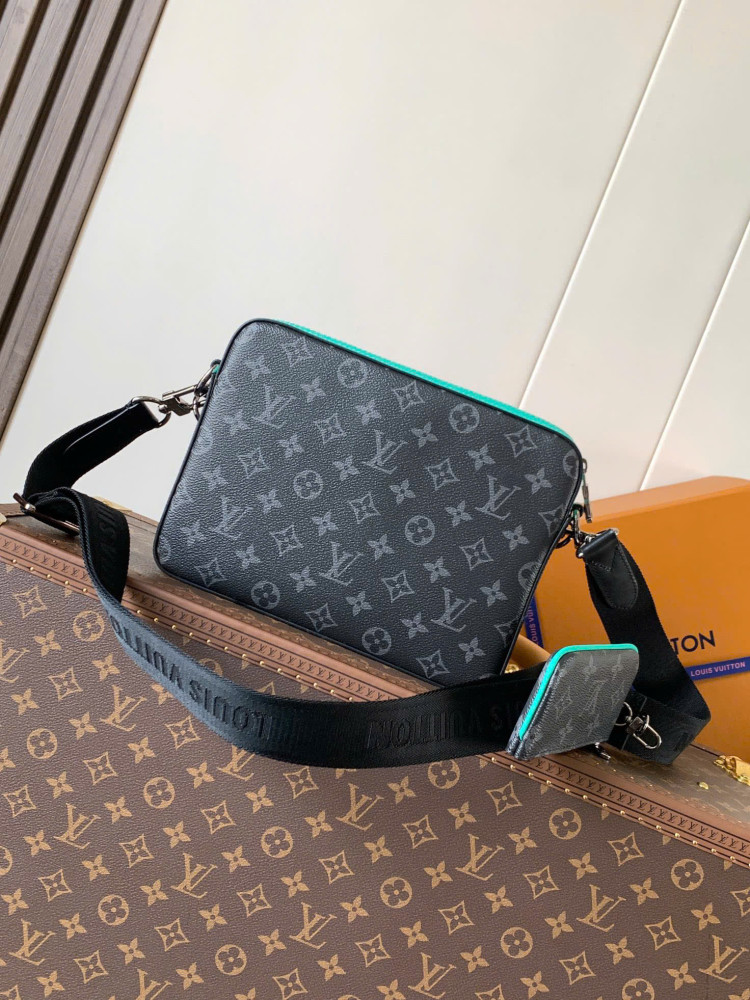 Túi đeo chéo Trio này có thiết kế ba trong một được làm từ vải Monogram Eclipse Reverse và các chi tiết nổi bật. Ngăn trước có khóa kéo và ví đựng tiền xu trên dây đeo vai có thể tháo rời, tăng thêm tính tiện dụng cùng với ngăn chính. Dây đeo vai bằng vải có thể điều chỉnh và tháo rời, được trang trí bằng logo Louis Vuitton, mang lại trải nghiệm đeo vai thoải mái.