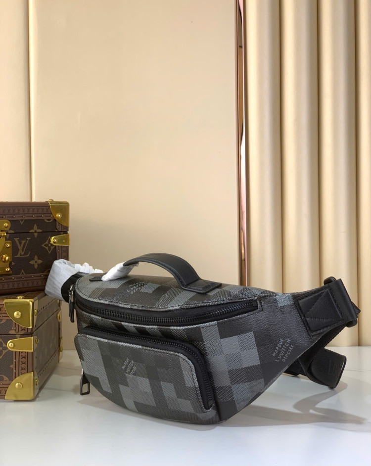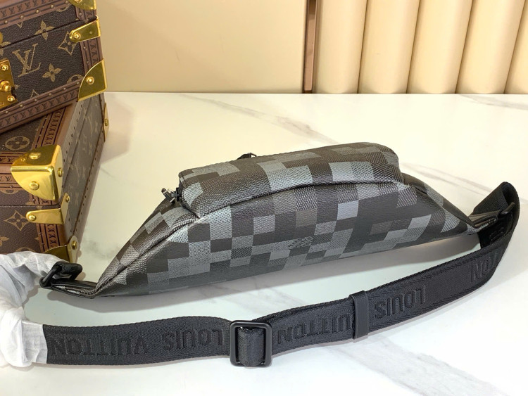 Túi đeo hông Rush này có thiết kế hiện đại, thời trang với chất liệu vải canvas Damoflage màu đen, phủ thêm họa tiết Damier dạng pixel tạo hiệu ứng ngụy trang. Dây đeo vai có thể điều chỉnh giúp bạn đeo thoải mái ở hông, vai hoặc đeo chéo.