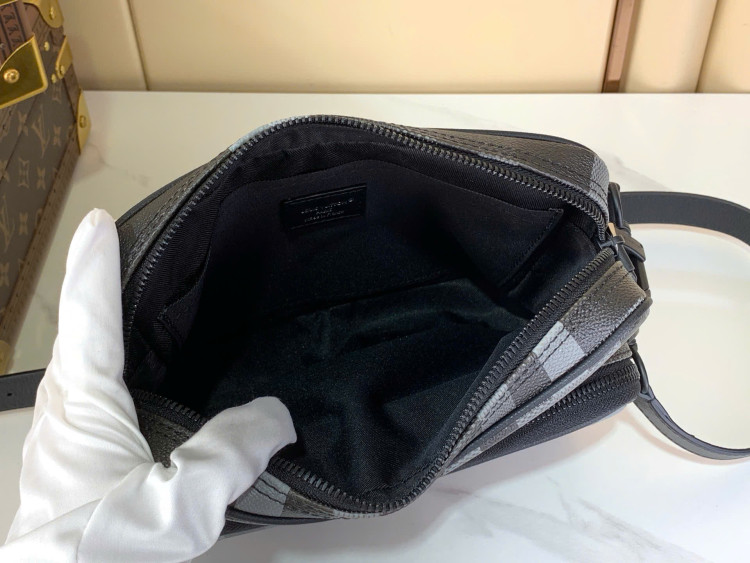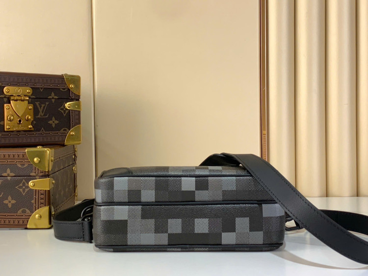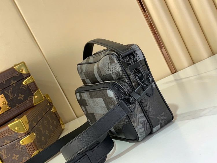 Chiếc túi đeo chéo Nil này được chế tác từ chất liệu vải canvas phủ Damoflage Black theo phong cách tái hiện của Pharrell Williams, kết hợp tầm nhìn sáng tạo của nhà thiết kế với sự sáng tạo truyền thống của thương hiệu để tạo nên họa tiết Damier dạng pixel giống như họa tiết rằn ri. Một ngăn trước có khóa kéo và ngăn chính hoàn thiện thiết kế tiện dụng.
