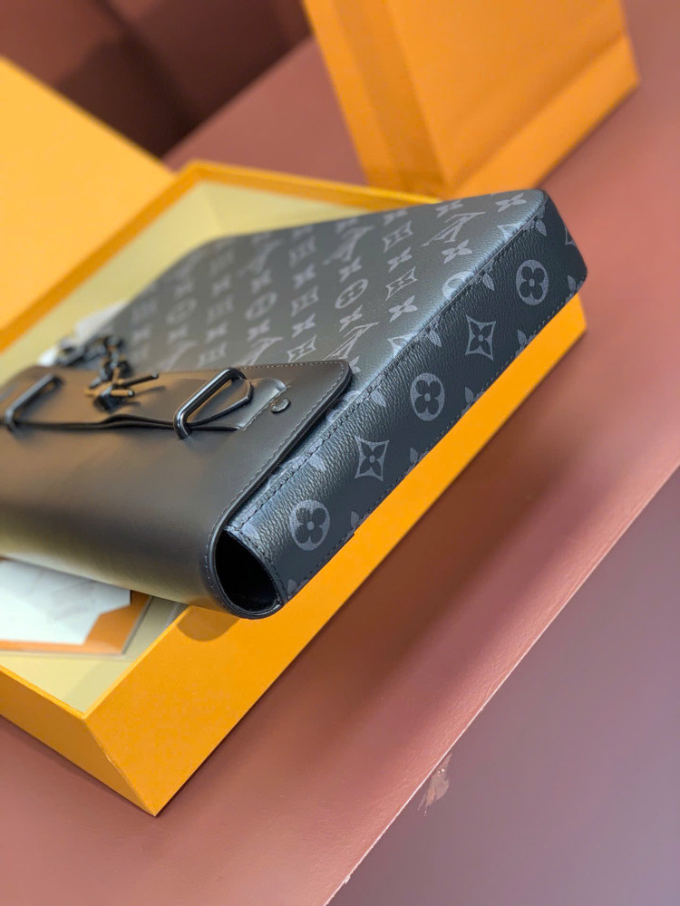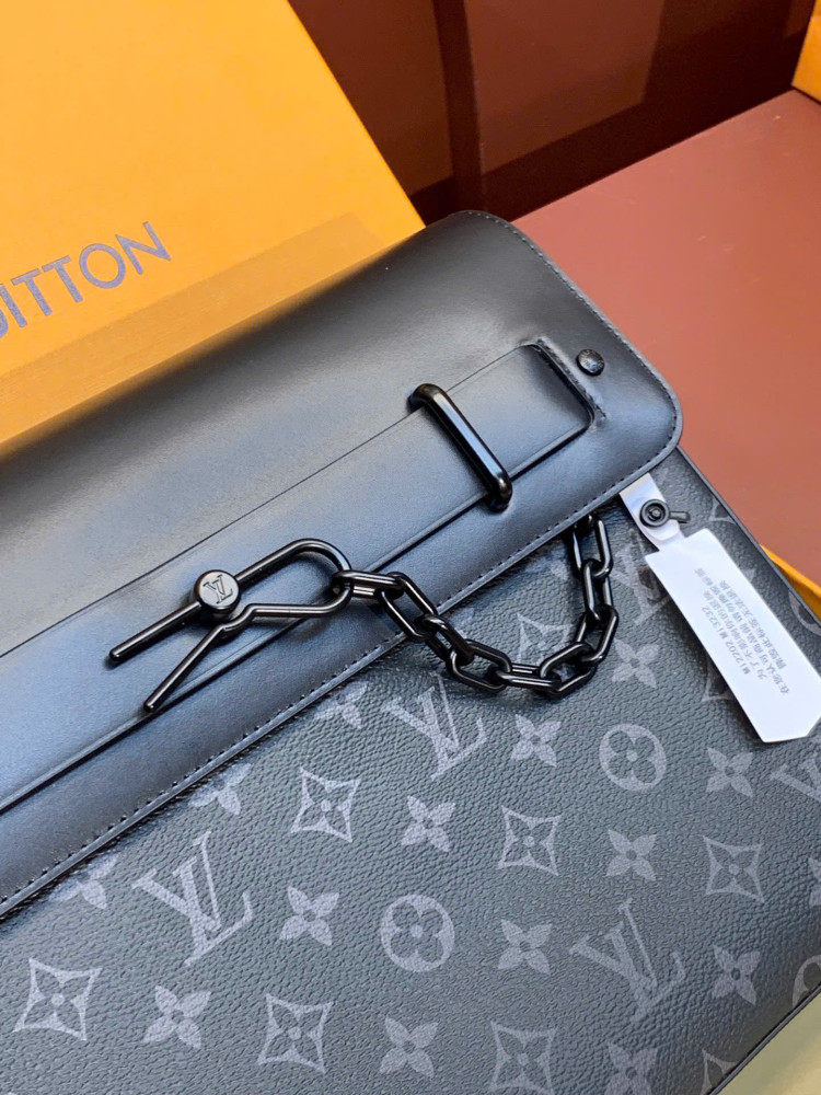 M80107! Chiếc túi xách POCHETTE STEAMER kết hợp kiểu dáng cổ điển của chất liệu Monogram Eclipse truyền thống của Louis Vuitton với các yếu tố biểu tượng đặc trưng như dây xích kim loại màu đen. Túi có không gian chứa đồ rộng rãi cho tài liệu và máy tính xách tay, cùng với 6 khe đựng thẻ và khóa nam châm để đảm bảo an toàn cho đồ dùng cá nhân. Thuận tiện để mang theo những vật dụng cần thiết hàng ngày khi làm việc hoặc đi du lịch. Phong cách và thời trang. Kích thước: 32x22x4cm.
