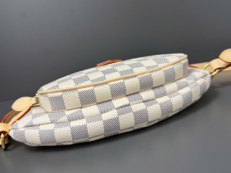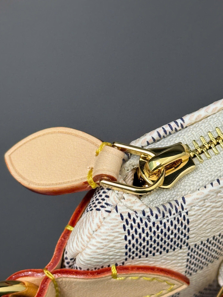 Chiếc túi Keepi N00230 (chip 163) ra mắt tại buổi trình diễn thời trang Xuân/Hè 2025, nổi bật với chất liệu vải Damier Azur cùng phần cứng kim loại ấn tượng và dây đeo vai có thể điều chỉnh để dễ dàng mang theo. Ngăn ngoài có khóa kéo tiện lợi để đựng các vật dụng nhỏ, và thẻ da phía trước được dập nổi logo Louis Vuitton. Kích thước: 12 x 6 x 29 cm (Cao x Rộng x Dài)
