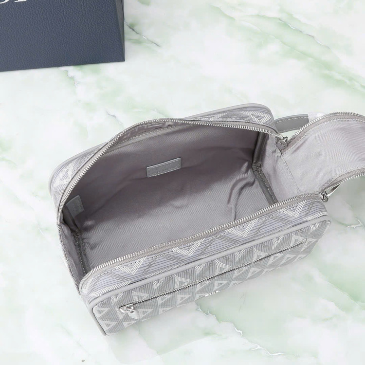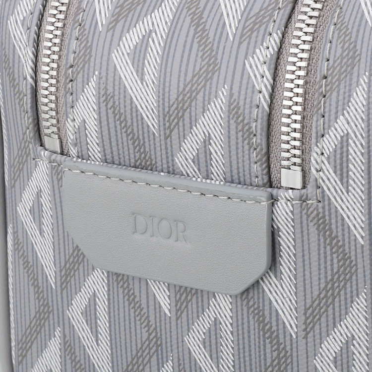 Chiếc túi đựng đồ vệ sinh cá nhân này kết hợp tính thực dụng với thiết kế tối giản. Được chế tác từ vải canvas họa tiết kim cương CD màu xám của Dior, lấy cảm hứng từ kho lưu trữ của Dior, túi có viền da bê mịn cùng tông màu và logo Dior ở mặt trước. Mặt trước bao gồm một túi zip, một ngăn zip rộng rãi và hai ngăn nhỏ. Túi có quai xách bằng da để cầm tay hoặc đặt trong nhiều loại túi xách khác nhau.