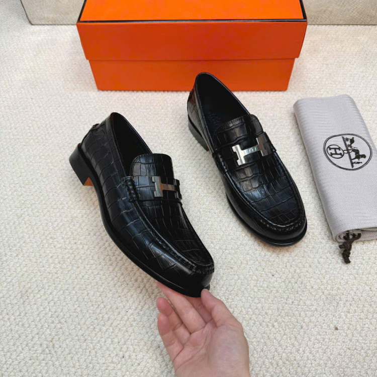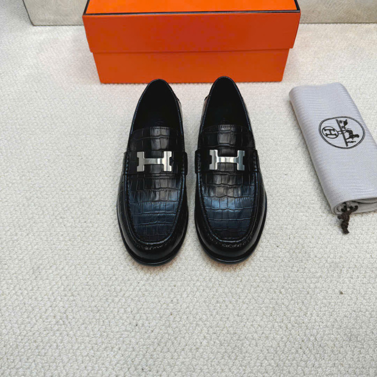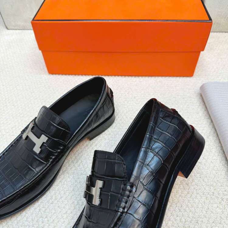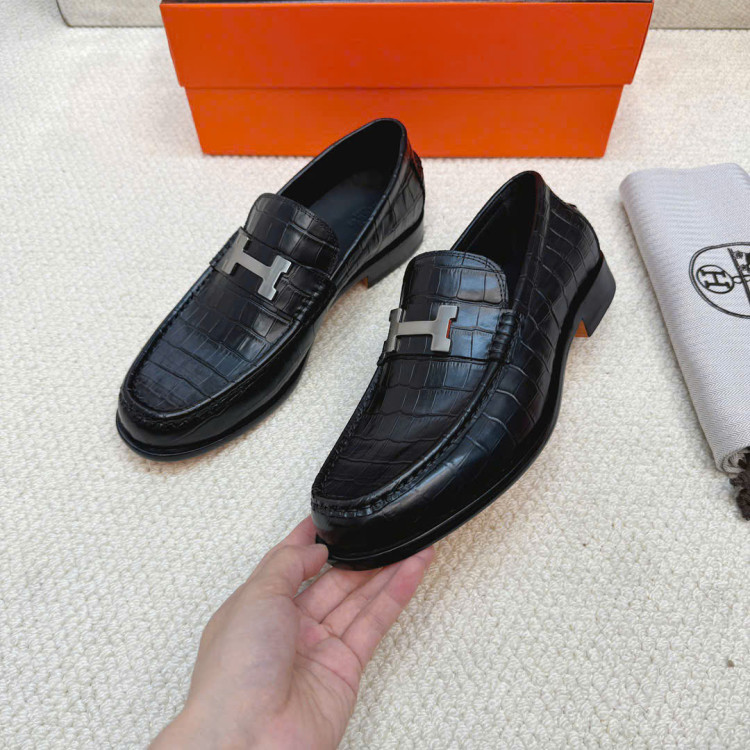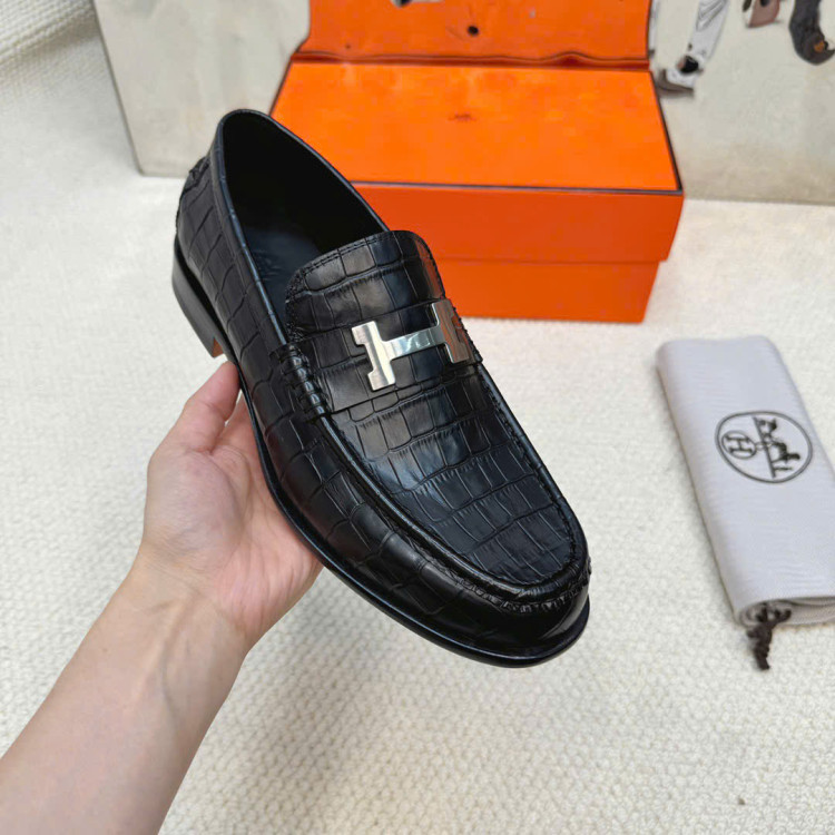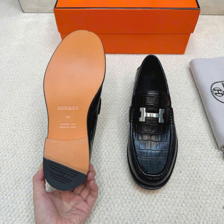 Giày lười da bò dập nổi nhập khẩu, có khóa Paris biểu tượng.