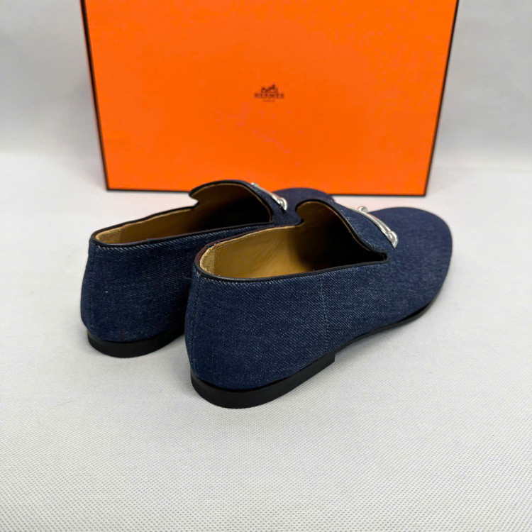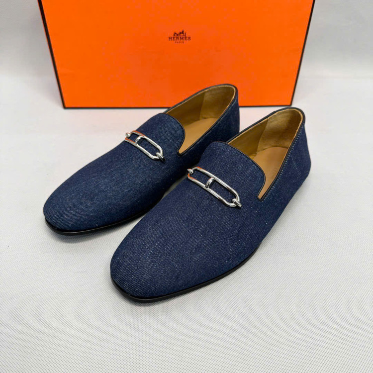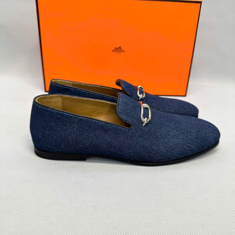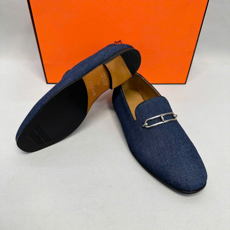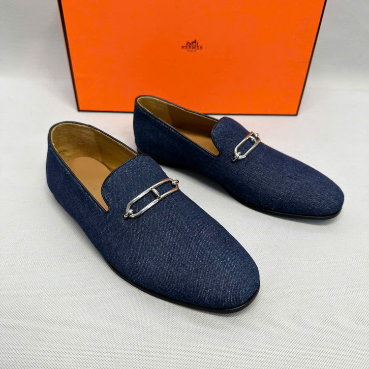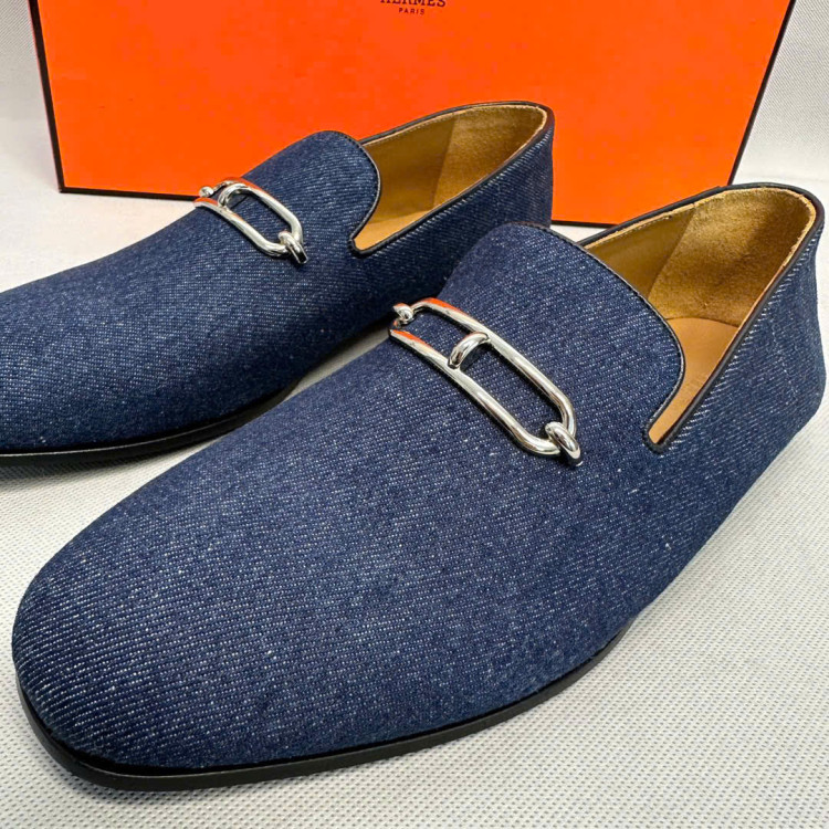 Giày lười da với khóa Roulis mạ palladium cổ điển.