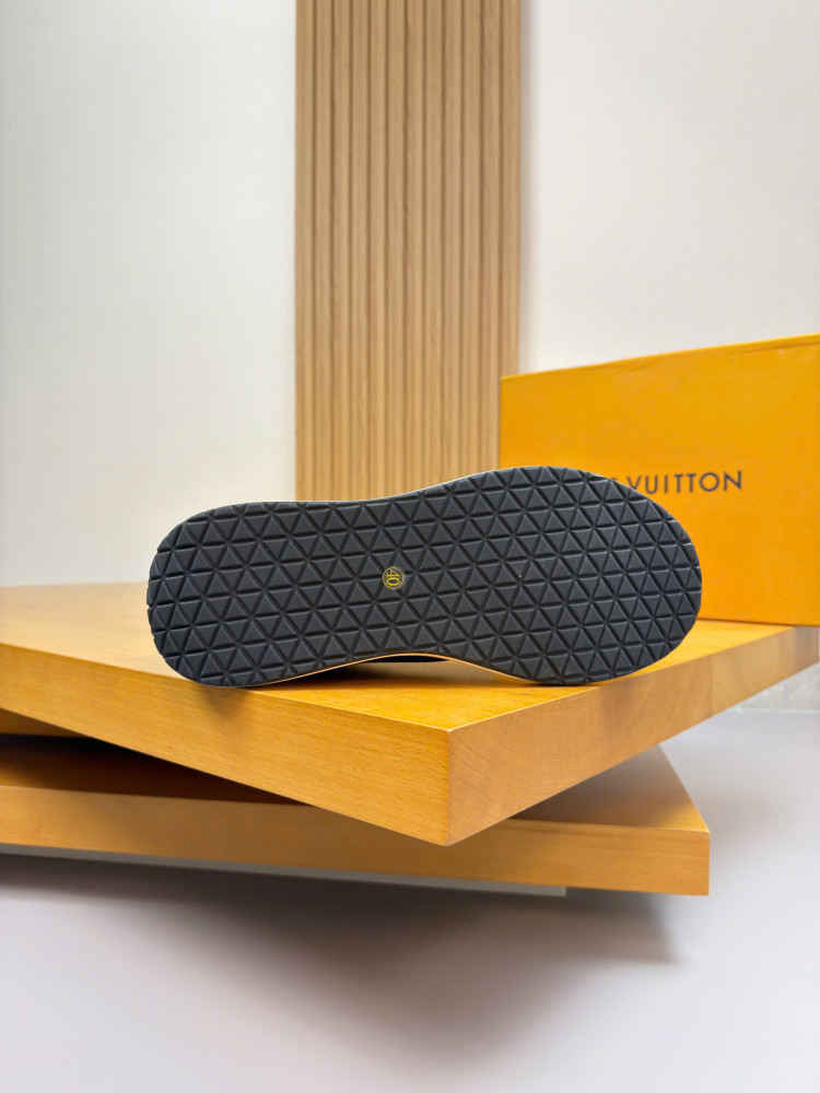 - Thân giày: Da bê Nappa, da bê sần, nhãn da logo thương hiệu được khâu trực tiếp lên thân giày, vải sọc ở miệng giày, nhãn hiệu được khâu trên lưỡi giày
