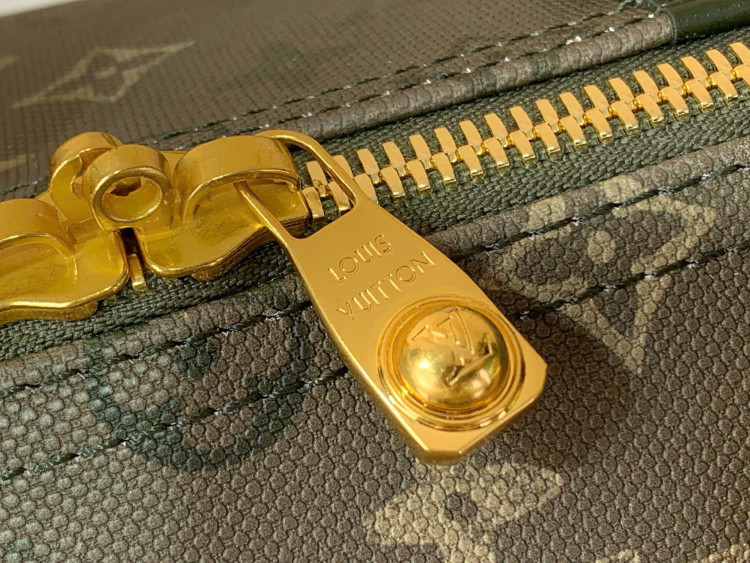 Chiếc túi du lịch Keepall Bandouliere 50 này được chế tác từ vải canvas phủ Monogram Surplus hiệu ứng rằn ri, thể hiện sự sáng tạo của Phanell Williams trong việc sử dụng chất liệu canvas Monogram cổ điển của thương hiệu. Các chi tiết kim loại mài mòn và da gợi lên hình ảnh một kỳ nghỉ thư giãn ở vùng quê, trong khi dây đeo vai bằng vải có thể tháo rời và điều chỉnh được mang đến nhiều lựa chọn mang theo.