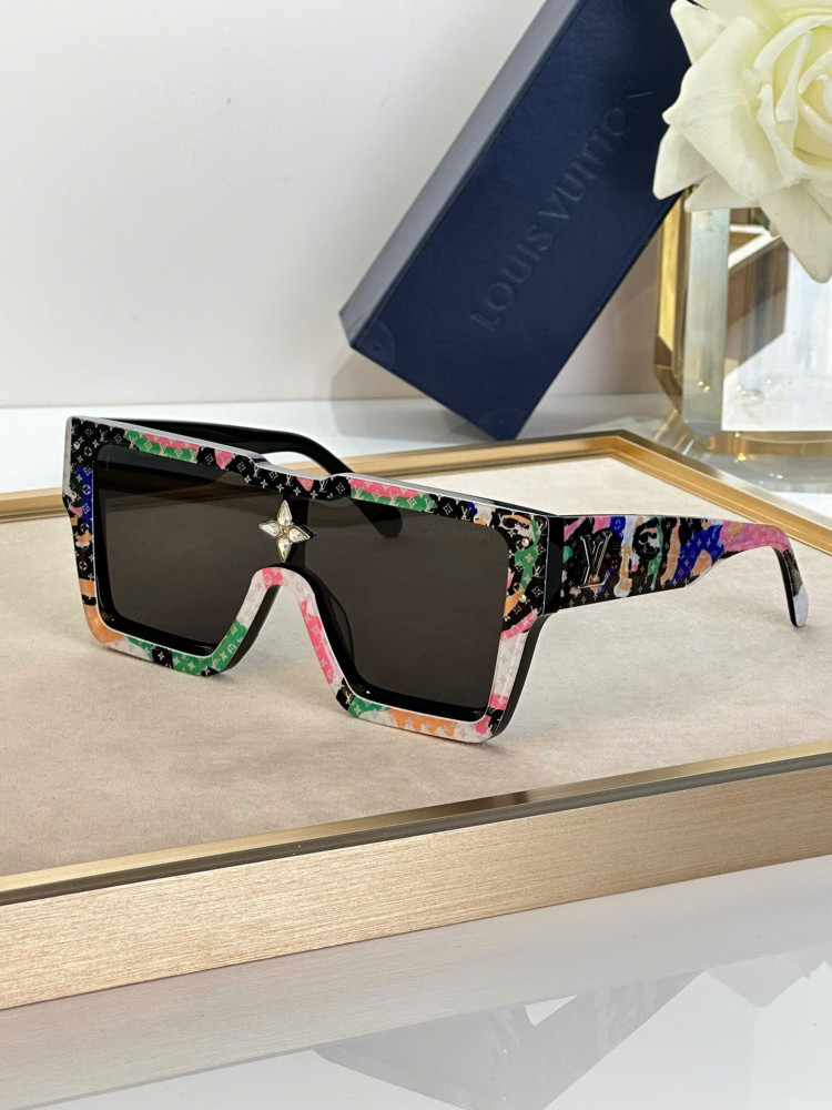 Z1547 Z2188 Z1832 Z1641 Z1643 Z1552Z Z1642 Z1558 Z1978 Z1789 Z1790 Z1736 Z1737 Z2031 Kính râm Cyclone bổ sung các yếu tố theo mùa mới cho thiết kế cổ điển từ năm 2006. Màu sắc rực rỡ và gọng kính có họa tiết kết hợp với cấu trúc đặc trưng dạng mũ trùm và độ dốc sâu; bông hoa Monogram trên cầu kính được khảm pha lê, lấp lánh như đồ trang sức; càng kính có họa tiết monogram LV.