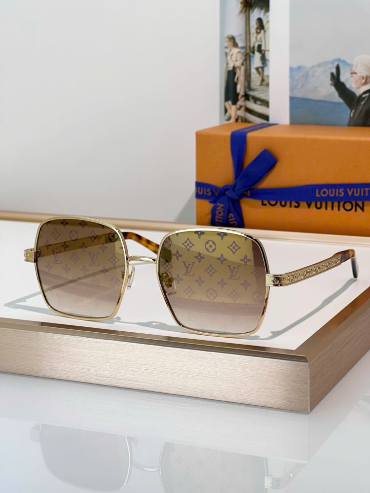 Kính râm LOUIS VUITTO*LV Aura Square có gọng vuông lớn, tinh tế kết hợp họa tiết hoa Monogram và chữ LV, được nhấn nhá thêm bởi biểu tượng Monogram trên càng kính kim loại. Đầu càng kính bằng sợi acetate mang lại cảm giác thoải mái.