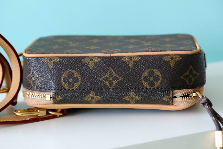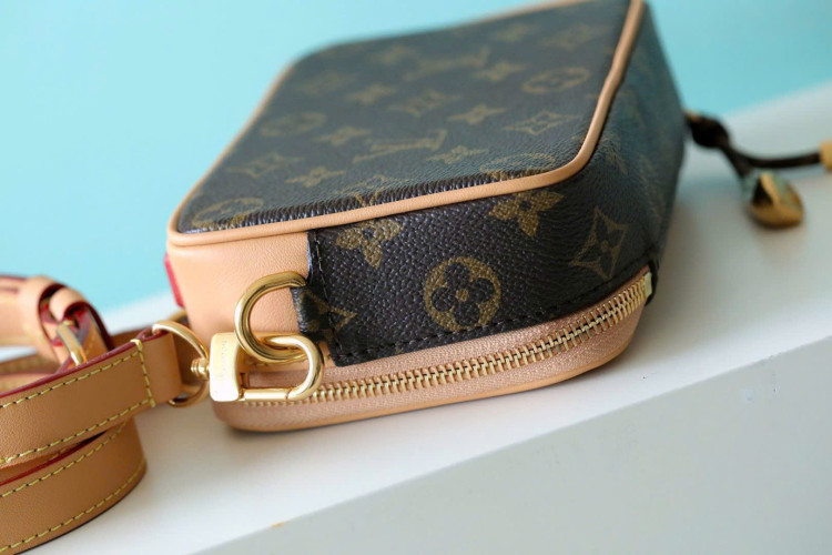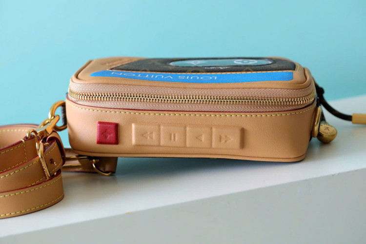 M14063 Kiểu dọc Ví đựng máy nghe nhạc đeo được này được làm từ da bò và vải canvas Monogram Gx, lót bằng vải dệt màu đen. Nó có một máy nghe nhạc kỹ thuật số kiểu retro với giao diện LV Blossom và màn hình giả gợi nhớ đến bảng điều khiển LV. Túi da màu vàng có họa tiết hoa lớn, dập nổi thẻ tai nghe, là một máy nghe nhạc/máy nghe MP3/túi đựng điện thoại có khóa kéo và có thể đựng điện thoại, ví đựng thẻ và chìa khóa.