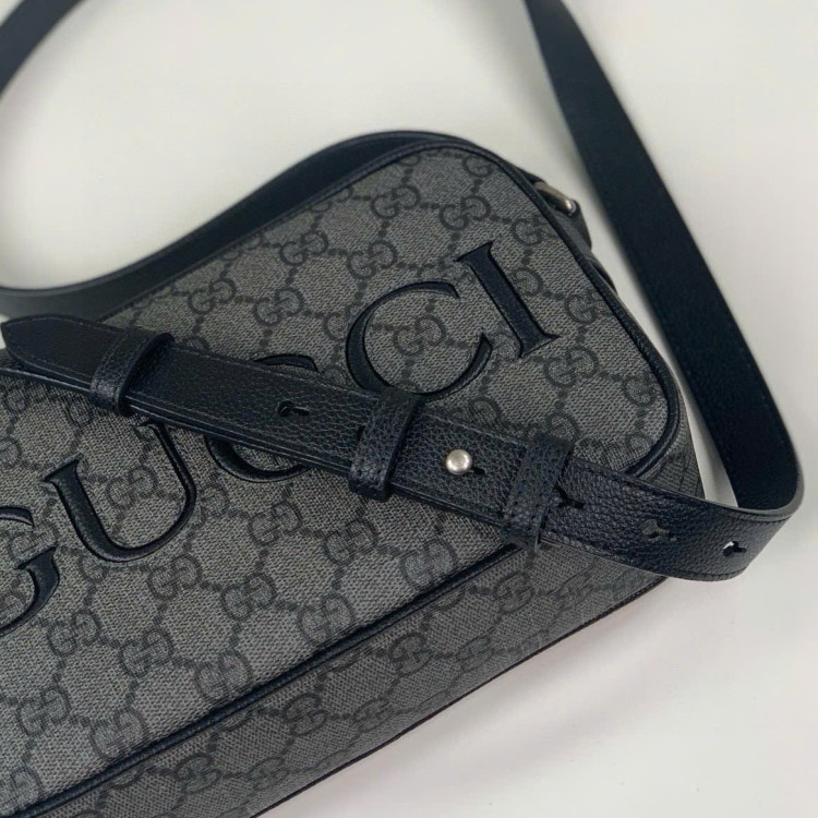 ????????❤️❤️【Hàng mới về năm 2024】 Túi đeo vai Gucci, màu xám và đen GG với da đen, lớp lót cotton-linen, dây đeo vai có thể điều chỉnh, mã sản phẩm 768391 màu xám đậm, kích thước 14X23.5X6~[rose][rose]
