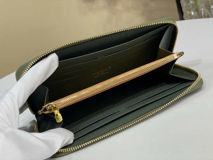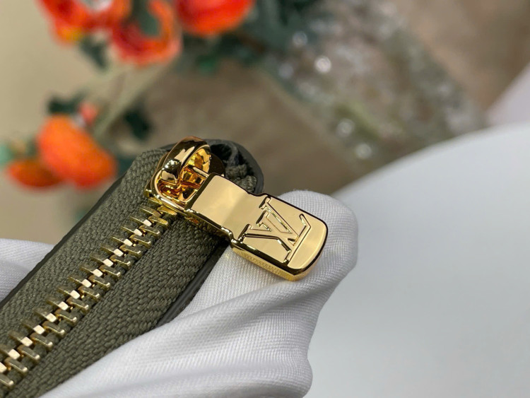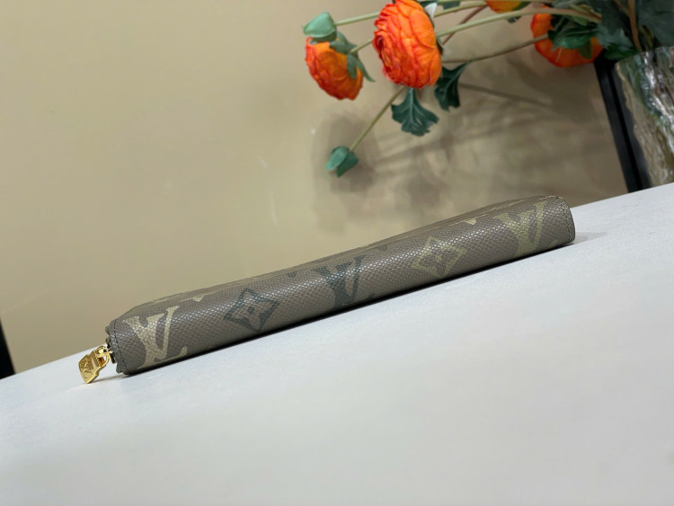 Một chiếc ví ngang có khóa kéo được làm từ da Trion. Thiết kế ngang tiện dụng hơn, tái hiện lại kiểu ví dọc có khóa kéo truyền thống.